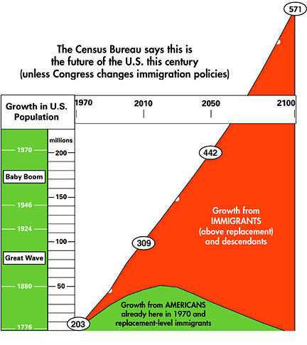 The chart below shows the U.S. Census Bureau's middle-range projection of how much additional population will be forced into the United States if current immigration and fertility levels continue.